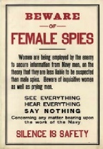 Women are bing employhed by the enemy to secure information from Navy men, on the theory that they are less liable to be suspected than male spies.